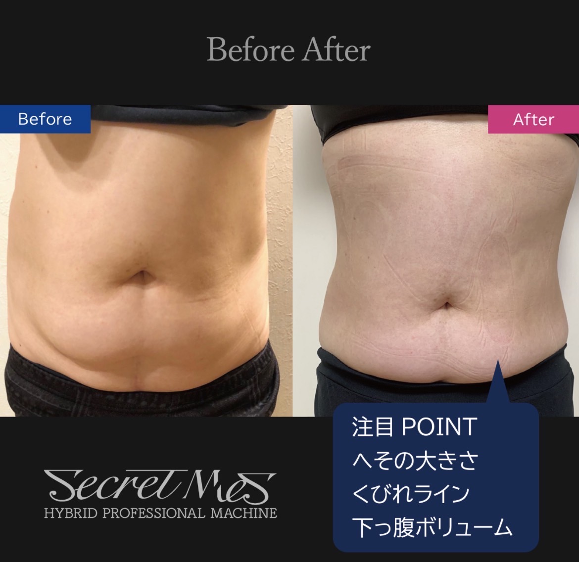 キャビテーションの施術により脂肪細胞そのものにアプローチをし、脂肪細胞自体を小さくしていきます。一度アプローチした脂肪細胞が元に戻ることがないため、リバウンドしにくいといわれています。