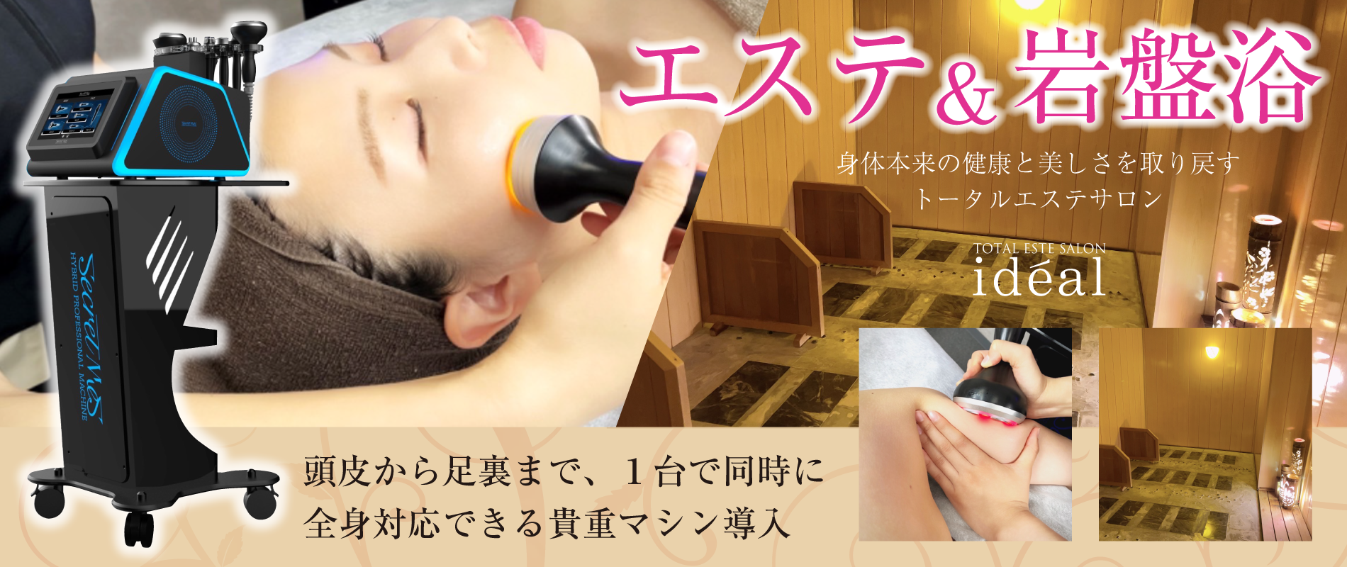 静岡では珍しい、岩盤浴が併設されたエステです。岩盤浴により代謝を高めることで、デトックス効果が得られます。
